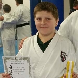 As a green belt, Leo was invited to become a Senpai, a member of the class which helps younger and new students with their movement and stance.