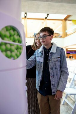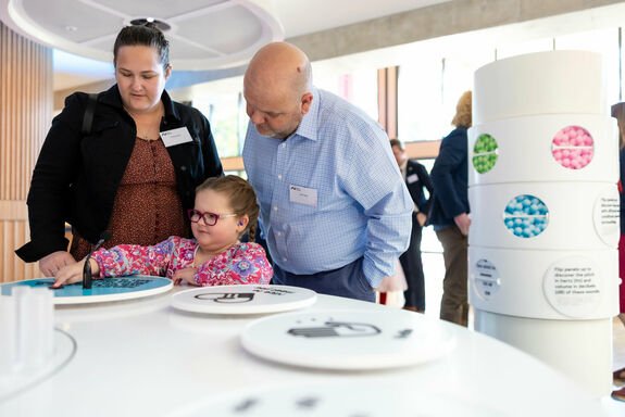 Guests also learned more about some of those who had benefited from working with NextSense. A series of video vignettes played from the stage, and interactive story screens positioned in the central courtyard, shared perspectives of those who live with hearing and vision loss, and how accessing the right support has helped them thrive.