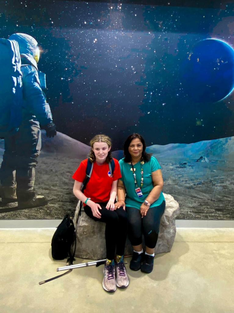 ‘I boosted my accessible technology skills before our trip—things that wouldn’t have been possible without the support of a team of people at NextSense. I used these skills at Space Camp, which helped me participate fully with students from all over the world,’ she says.