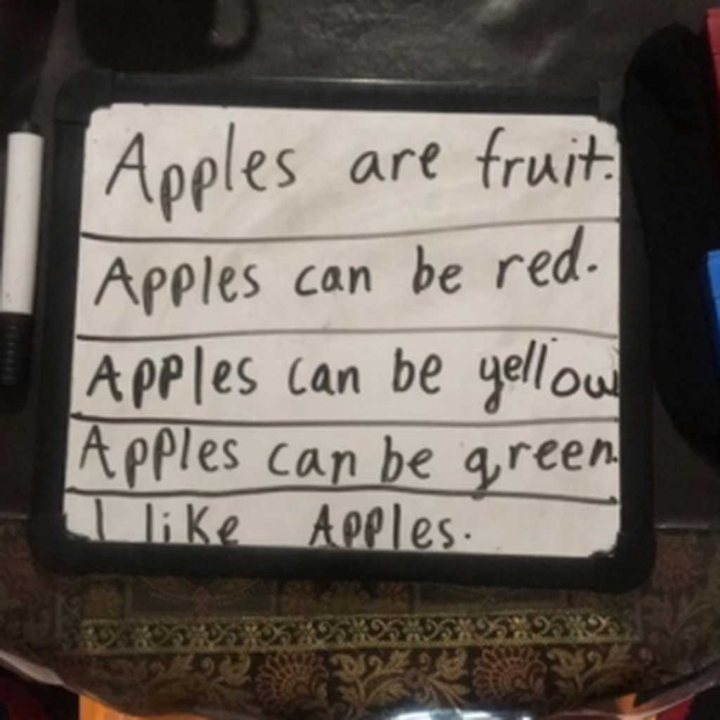 One part of online learning sees the teachers model an activity whilst the students explore it – writing, speaking, sharing and drawing. With more time being spent in the family home the teaching teams are embracing the home environment and incorporating it into daily lessons.